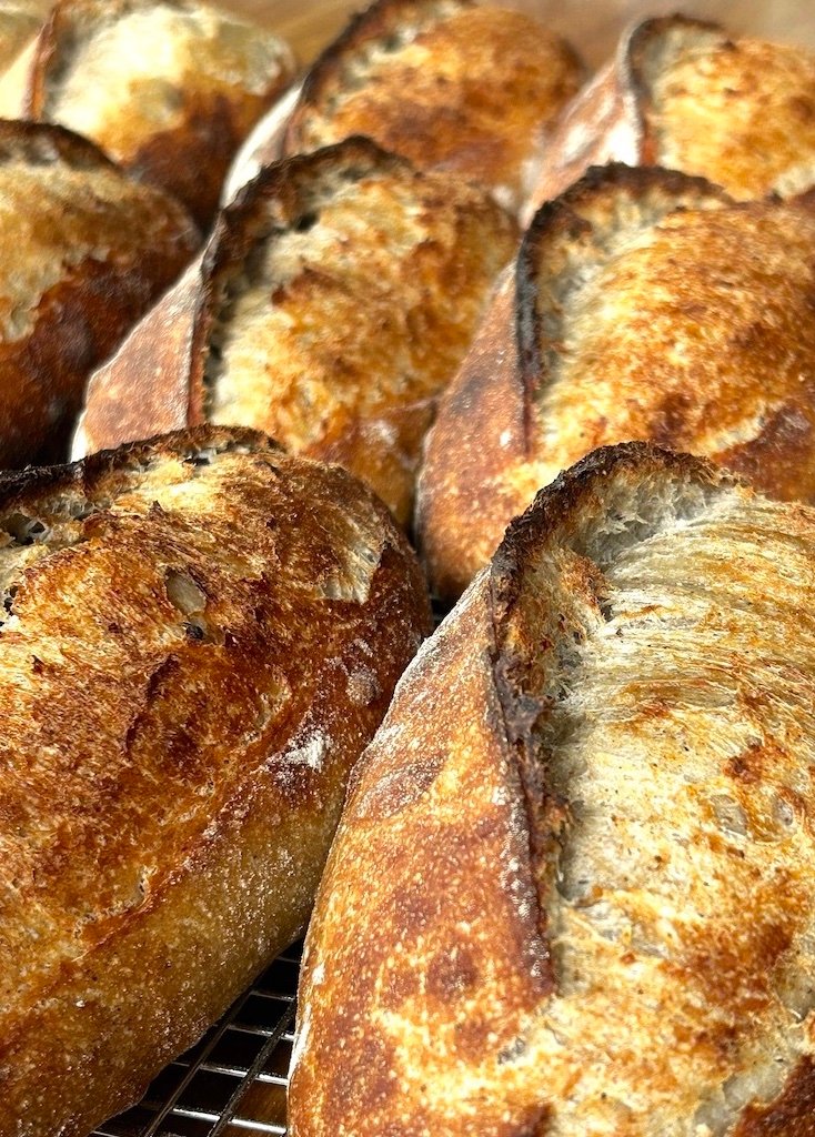 All breads are made using organic flours and an 18+ hour sourdough fermentation process to develop complex flavor, build structure, improve digestibility, and prolong shelf life without preservatives.