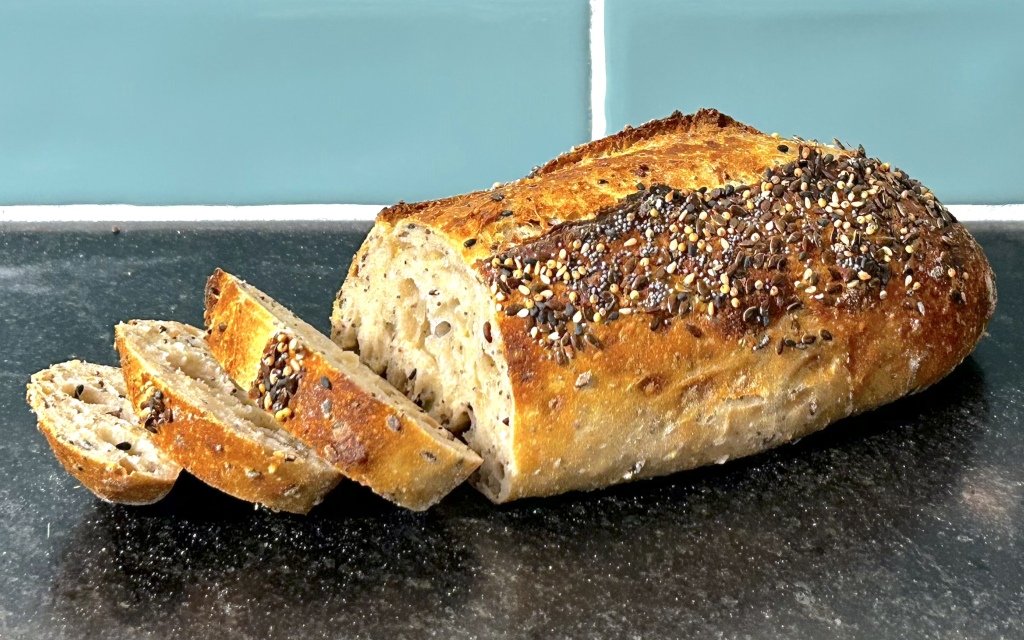 Seedy bread with varied textures from flax, white & black sesame, millet and poppy. Hearty, substantial crumb with crunchy seed pieces throughout and a rustic, seed-studded exterior. Pairs well with avocado, hummus, fresh vegetables, soft cheeses, and honey.